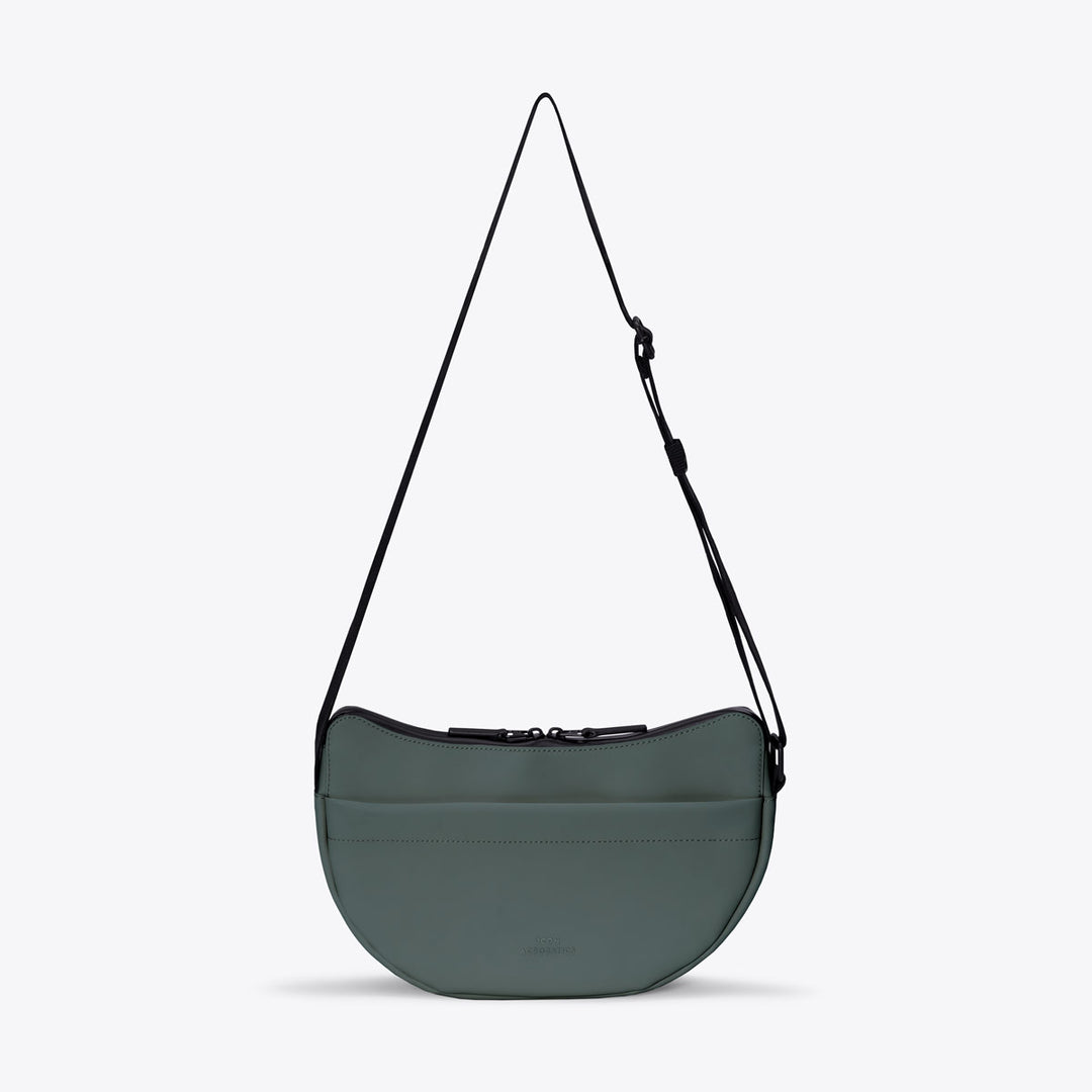 Petit sac cross-body en forme de demi-lune, la Alva Medium marie élégance minimaliste et ingénierie durable. Fabriqué en PUrTEX∞, un matériau technique ultra-résistant issu de textiles recyclés avec finition PU sans solvants, il offre une durabilité et une esthétique supérieure au cuir synthétique traditionne.
