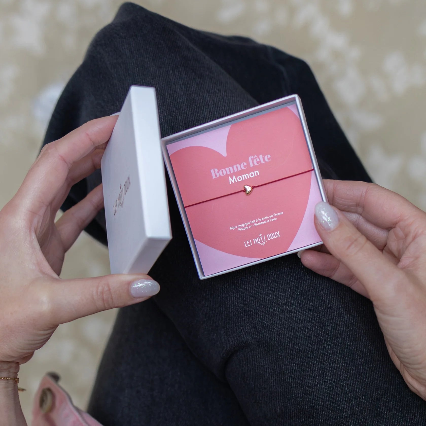 Fabriqué à la main en France – Taille ajustable – coeur plaqué or – Résistant à l’eau.