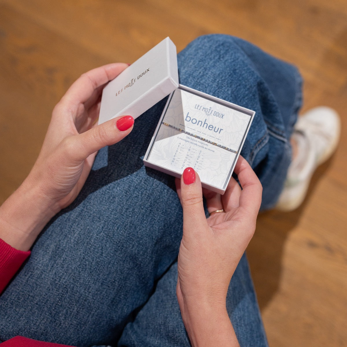 Les Mots Doux est une marque française de bijoux artisanaux fondée en 2015 par Maud Lemonnier-Collet. Elle propose des créations uniques, comme des bracelets et colliers codés en morse, permettant de transmettre des messages personnels et poétiques. Fabriqués à la main en France avec des matériaux de qualité, ces bijoux allient élégance et signification profonde, offrant une manière originale de célébrer les émotions et les liens précieux