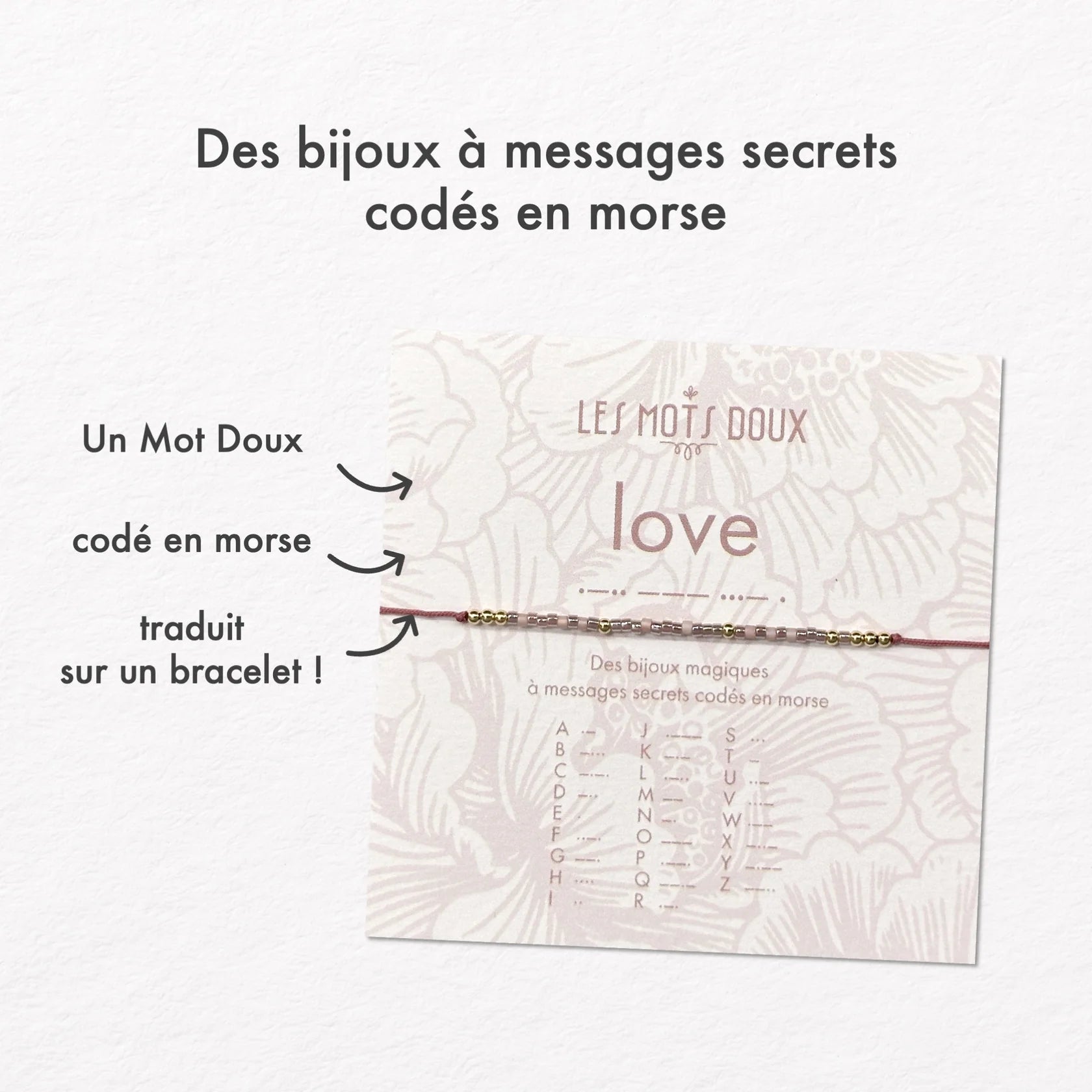 Les Mots Doux est une marque française de bijoux artisanaux fondée en 2015 par Maud Lemonnier-Collet. Elle propose des créations uniques, comme des bracelets et colliers codés en morse, permettant de transmettre des messages personnels et poétiques. Fabriqués à la main en France avec des matériaux de qualité, ces bijoux allient élégance et signification profonde, offrant une manière originale de célébrer les émotions et les liens précieux.