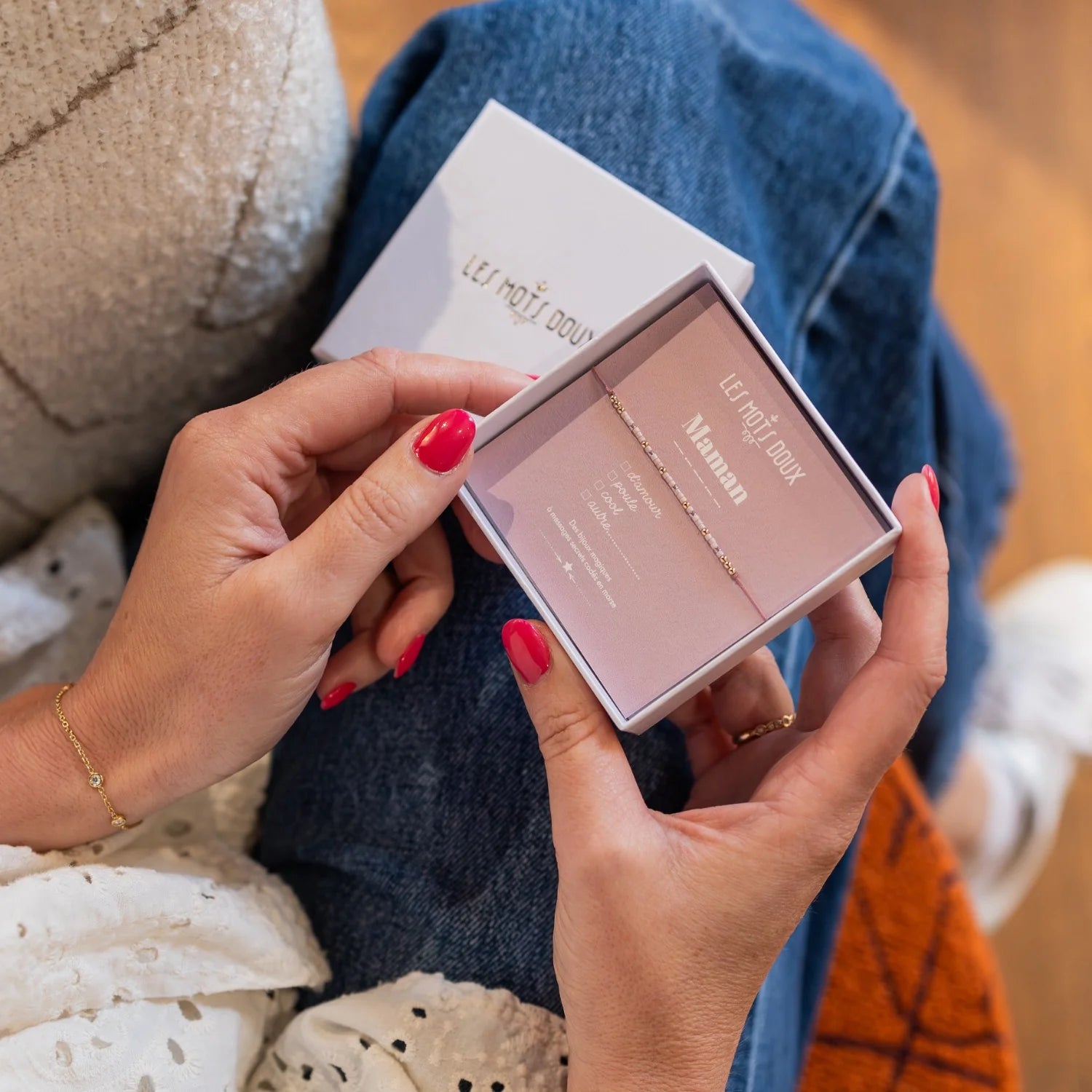 Les Mots Doux est une marque française de bijoux artisanaux fondée en 2015 par Maud Lemonnier-Collet. Elle propose des créations uniques, comme des bracelets et colliers codés en morse, permettant de transmettre des messages personnels et poétiques. Fabriqués à la main en France avec des matériaux de qualité, ces bijoux allient élégance et signification profonde, offrant une manière originale de célébrer les émotions et les liens précieux.