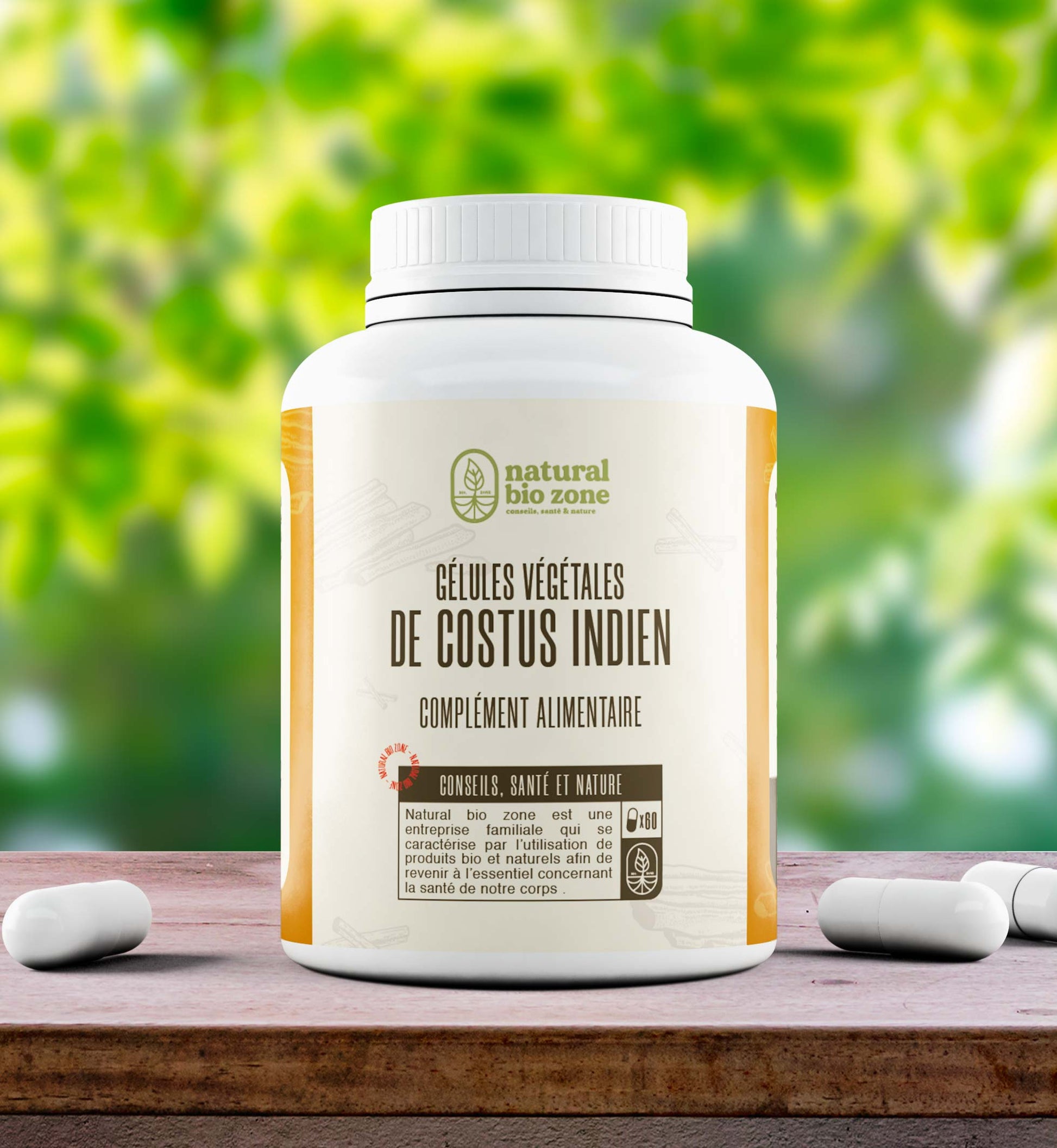 Les Gélules Végétales de Costus Indien Natural Bio Zone, 100 % naturelles, concentrent toute la puissance de cette plante rare et bienfaisante.