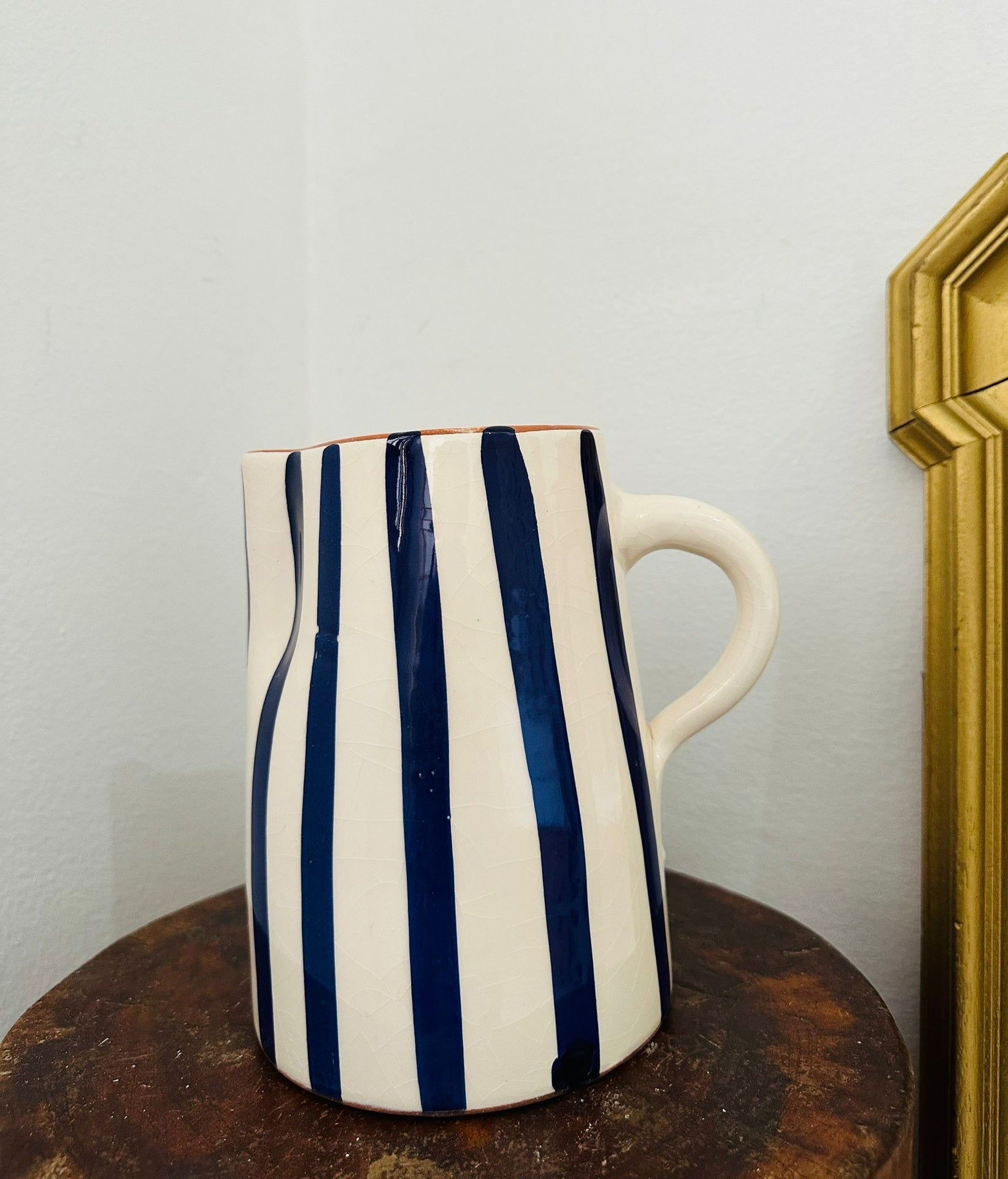 Cette carafe fait à la main au Maroc avec de l'argile rouge, évoque l'élégance et le raffinement de l'artisanat marocain. Chaque pièce de cet ensemble est le fruit d'un travail artisanal minutieux, perpétuant une tradition millénaire de poterie.