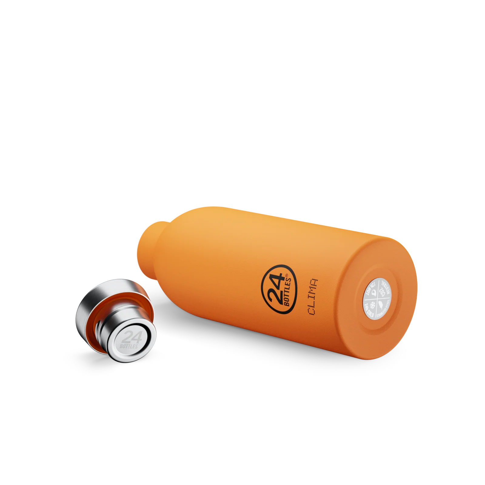 La Clima Bottle Total Orange 500 ml de 24 Bottles est une bouteille isotherme en acier inoxydable au design minimaliste et intemporel. Sa couleur orange lui confère une élégance naturelle, tandis que sa finition offre une texture douce au toucher et une résistance durable. Conçue sans revêtement intérieur ni BPA, elle préserve le goût des boissons et conserve leur température chaude pendant 12 h et froide pendant 24 h.