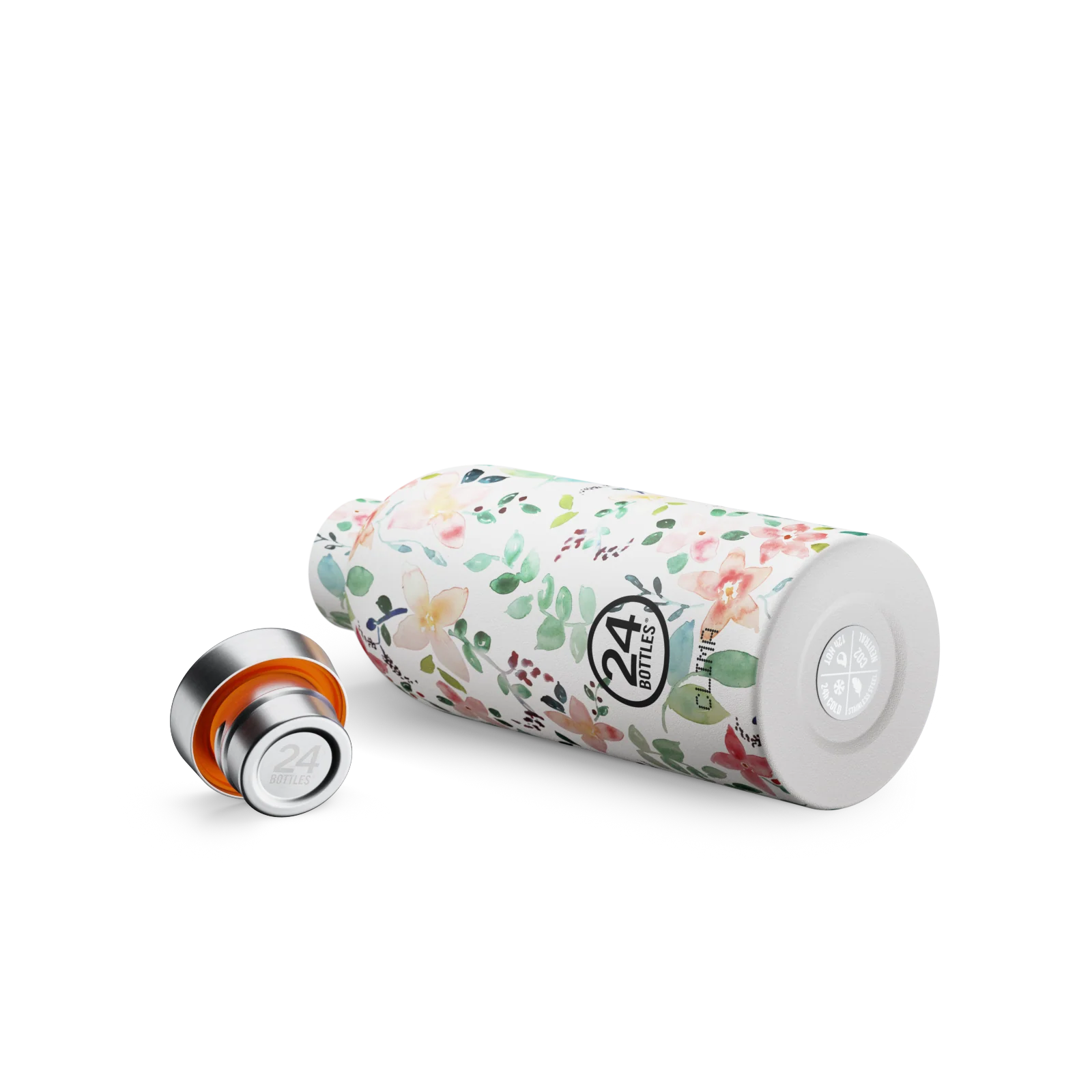 La Clima Bottle Dusty Pink 500 ml de 24 Bottles est une bouteille isotherme en acier inoxydable au design minimaliste et intemporel. Sa couleur blanche rehaussée de motifs floraux lui confère une élégance naturelle, tandis que sa finition offre une texture douce au toucher et une résistance durable. Conçue sans revêtement intérieur ni BPA, elle préserve le goût des boissons et conserve leur température chaude pendant 12 h et froide pendant 24 h.
