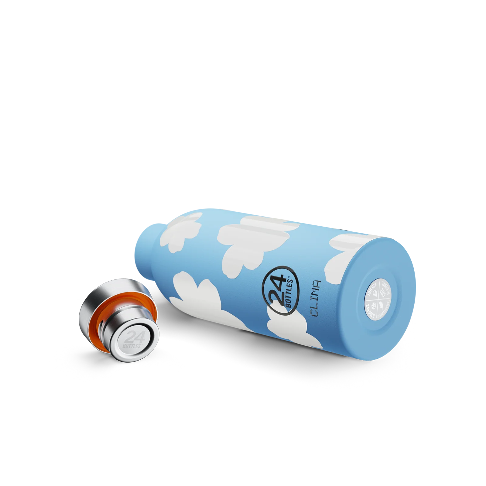 La Clima Bottle Daydreaming Blue 500 ml de 24 Bottles est une bouteille isotherme en acier inoxydable au design minimaliste et intemporel. Sa couleur bleue et ses motifs blancs lui confèrent une élégance naturelle, tandis que sa finition offre une texture douce au toucher et une résistance durable. Conçue sans revêtement intérieur ni BPA, elle préserve le goût des boissons et conserve leur température chaude pendant 12 h et froide pendant 24 h.