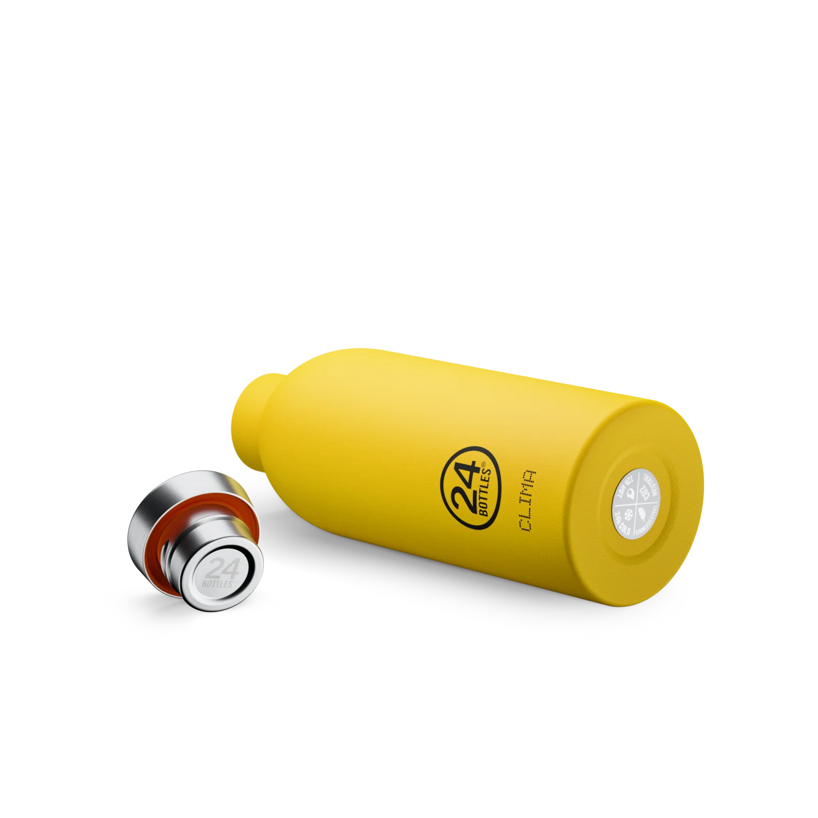 La Clima Bottle Taxi Yellow 500 ml de 24 Bottles est une bouteille isotherme en acier inoxydable au design minimaliste et intemporel. Sa couleur jaune moutarde lui confère une élégance naturelle, tandis que sa finition offre une texture douce au toucher et une résistance durable. Conçue sans revêtement intérieur ni BPA, elle préserve le goût des boissons et conserve leur température chaude pendant 12 h et froide pendant 24 h.