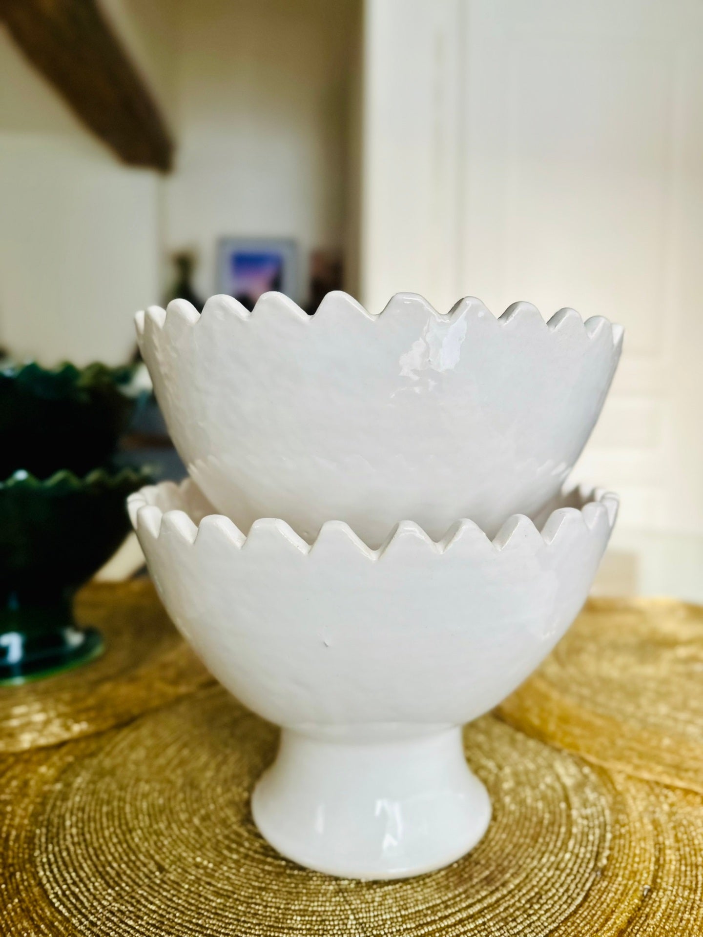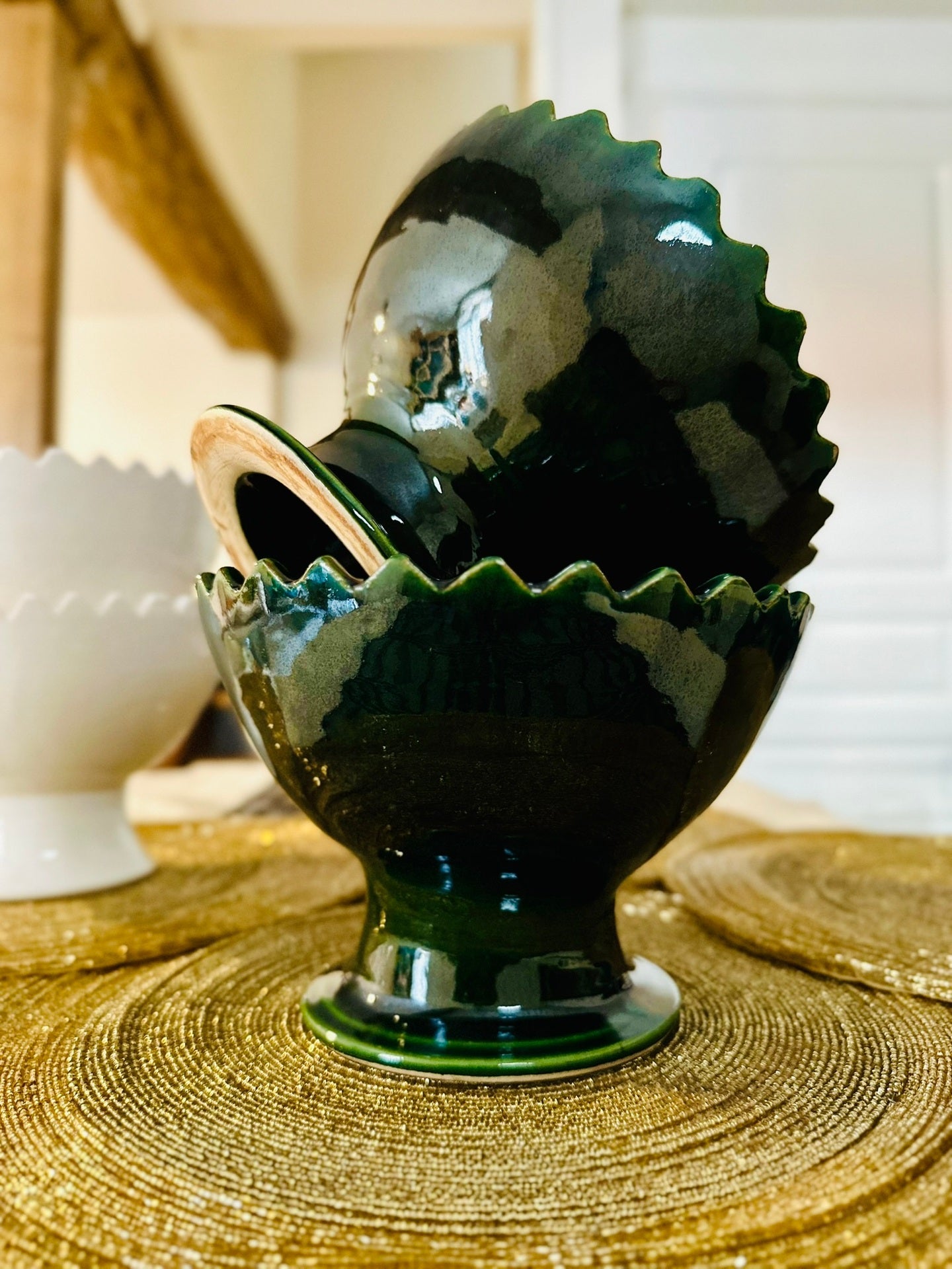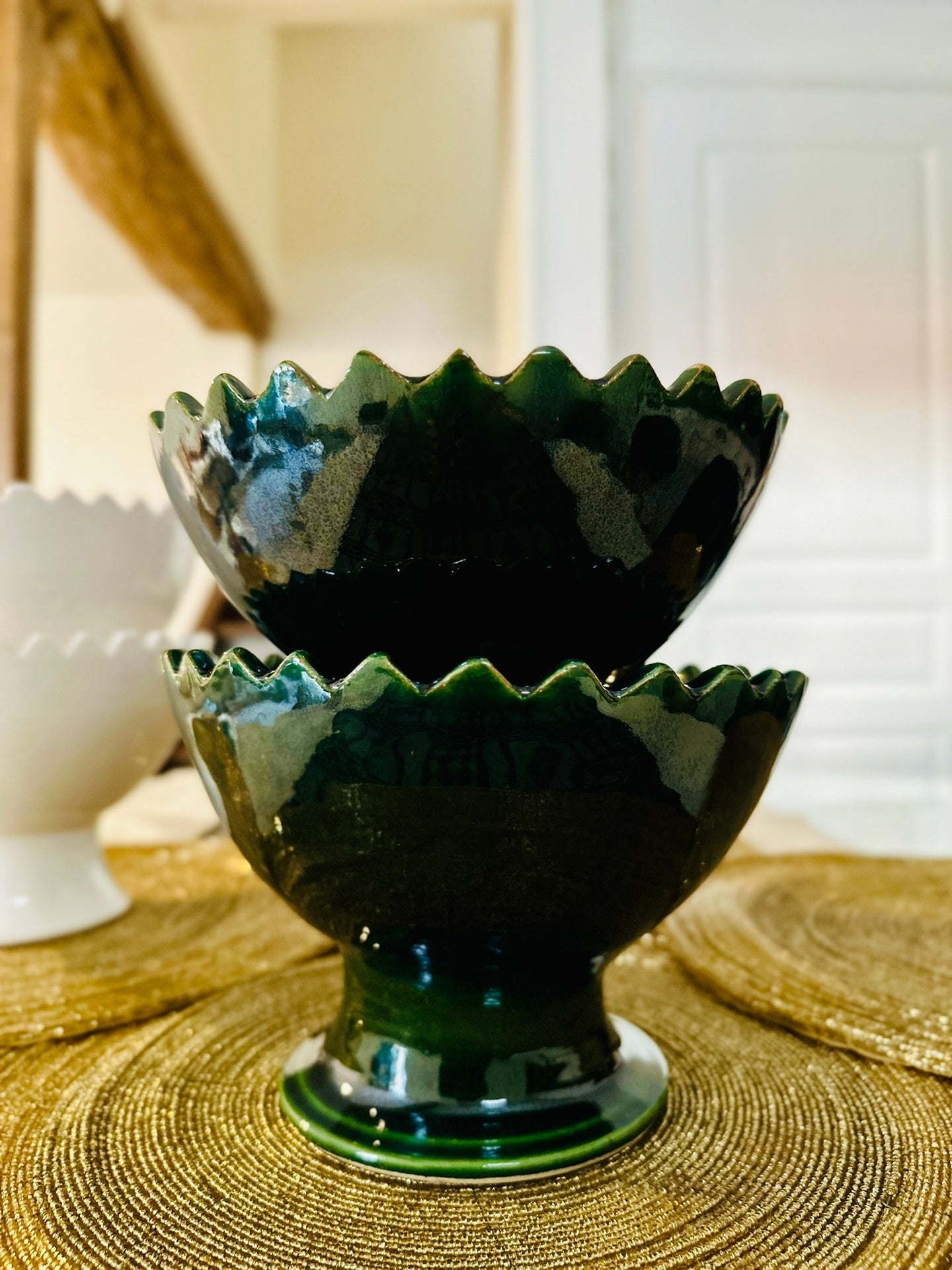 Saladier moyen blanc et vert fait main au Maroc. Apportez une touche de fraîcheur et d'artisanat à votre table avec ce saladier moyen blanc et vert, fabriqué à la main au Maroc.