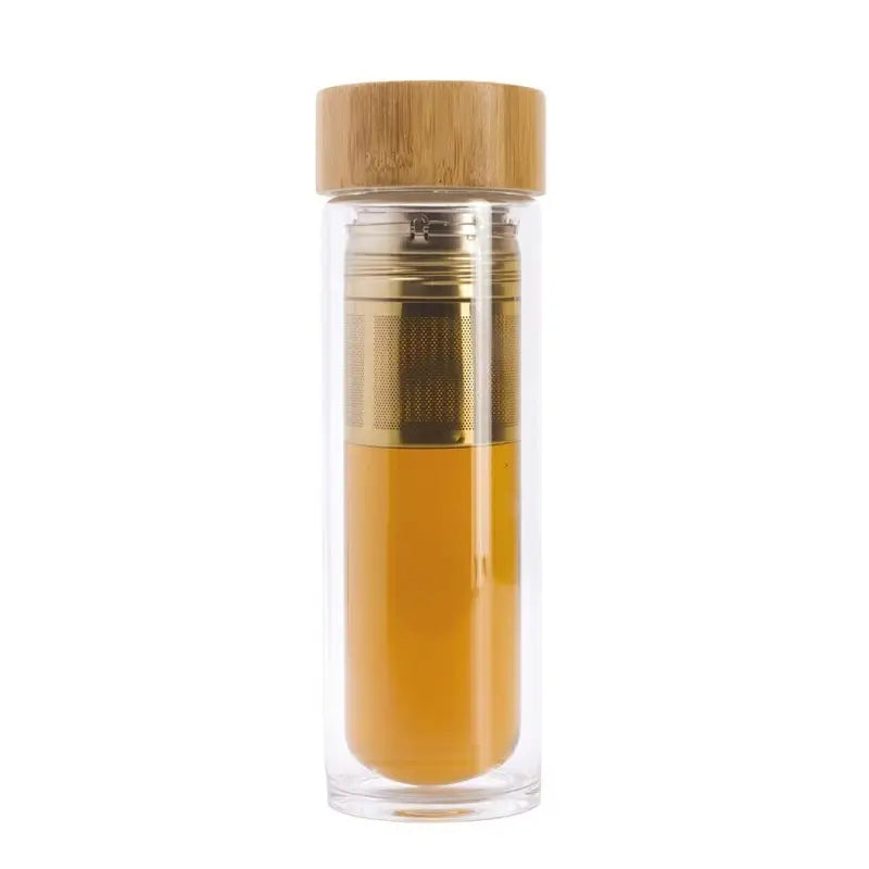 Emportez votre thé partout avec vous, grâce à cette gourde élégante en verre double paroi, accompagnée d'un joli infuseur en acier inoxydable. Une gourde écologique, durable et réutilisable, qui garde votre thé au chaud ou au froid en toute circonstance. De délicieuses infusions à savourer tout au long de la journée..