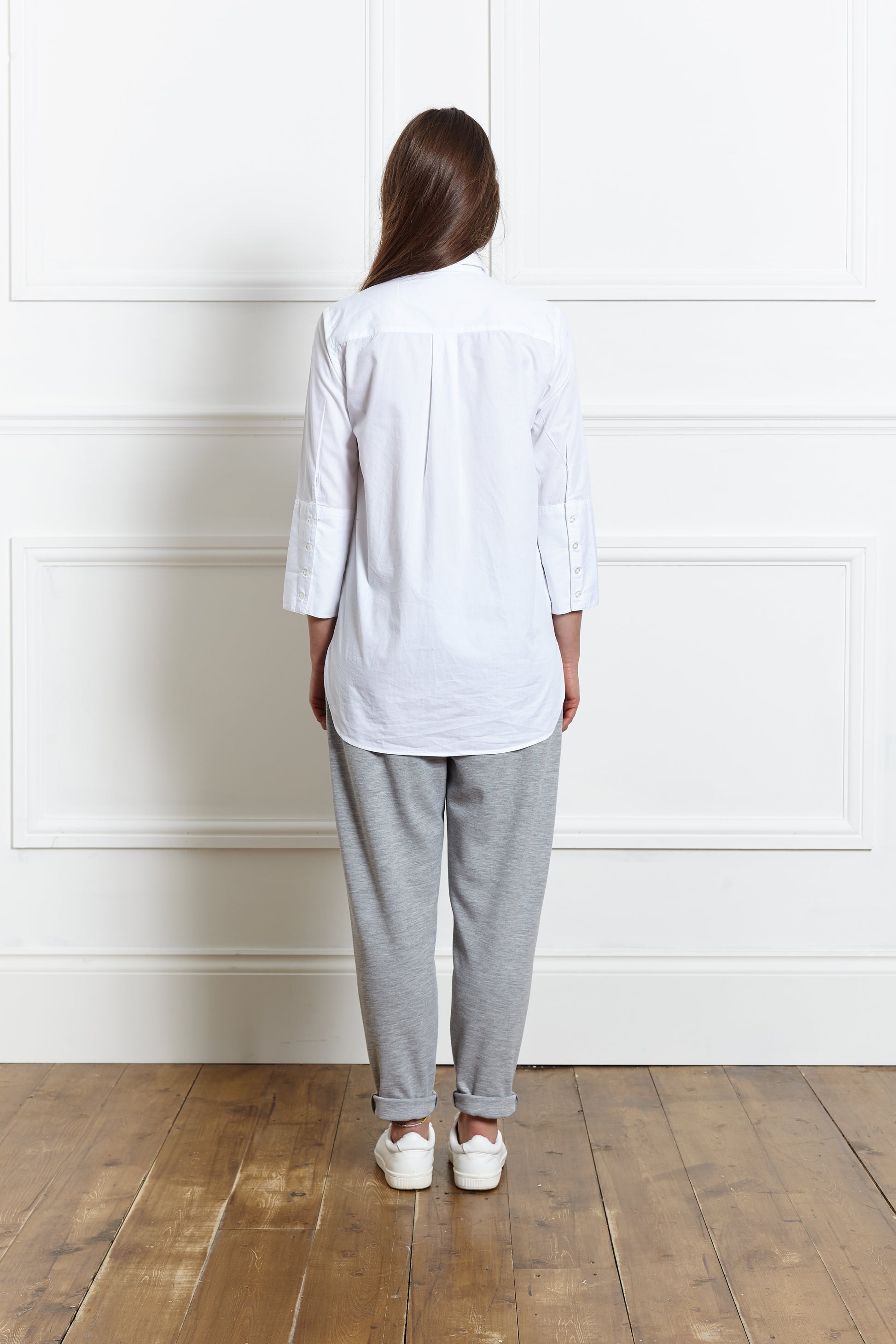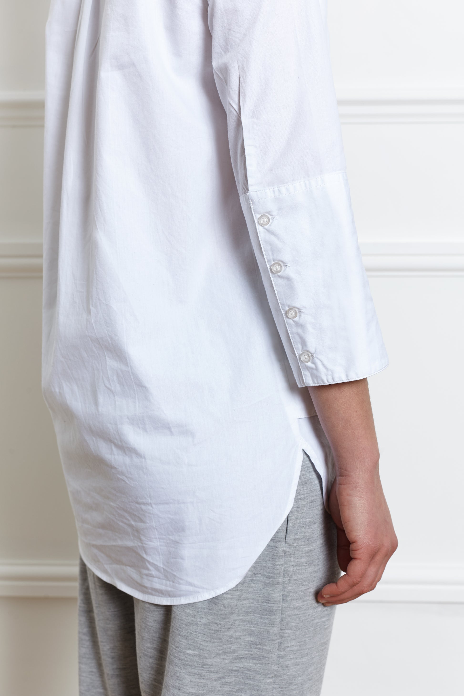La chemise blanche réinventée. Avec ses découpes graphiques et sa coupe moderne, la Panel Shirt White allie structure et fluidité. Une pièce forte et responsable, conçue pour s’adapter à toutes les morphologies avec élégance.