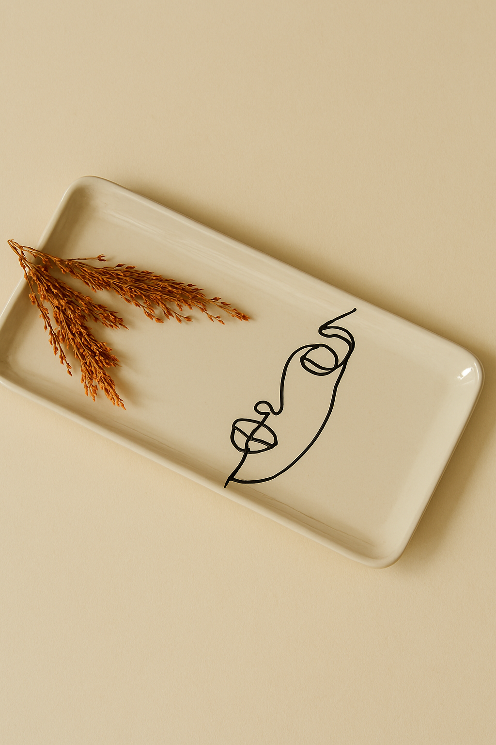 Le plateau Face Art transforme chaque service en une véritable exposition artistique. Orné de visages abstraits dessinés à la main, il reflète l’authenticité du savoir-faire artisanal tunisien. Chaque pièce est unique, alliant élégance et modernité pour apporter une touche originale à vos moments de partage.