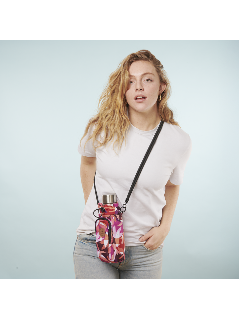 Un élégant porte‑gourde pensé pour transporter bouteilles, gourdes ou canettes sans jamais basculer. Il est doté d’une fermeture élastique sécurisante, d’une poche intégrée pour téléphone, et d’une bandoulière réglable et interchangeable. Réalisé en polyester recyclé, végan et déperlant, il est également étanche et bénéficie de la garantie à vie signée Cabaïa