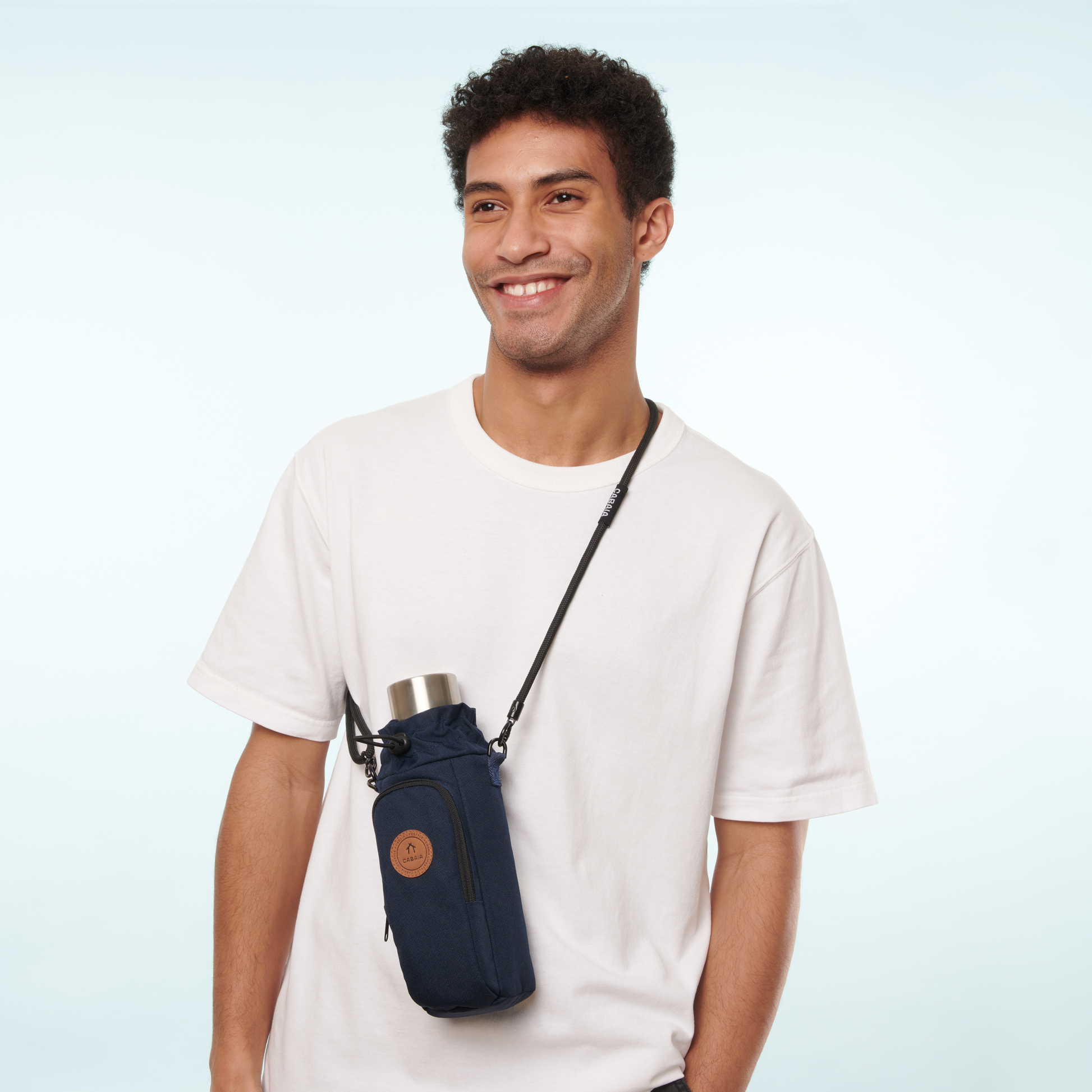 Un élégant porte‑gourde pensé pour transporter bouteilles, gourdes ou canettes sans jamais basculer. Il est doté d’une fermeture élastique sécurisante, d’une poche intégrée pour téléphone, et d’une bandoulière réglable et interchangeable. Réalisé en polyester recyclé, végan et déperlant, il est également étanche et bénéficie de la garantie à vie signée Cabaïa