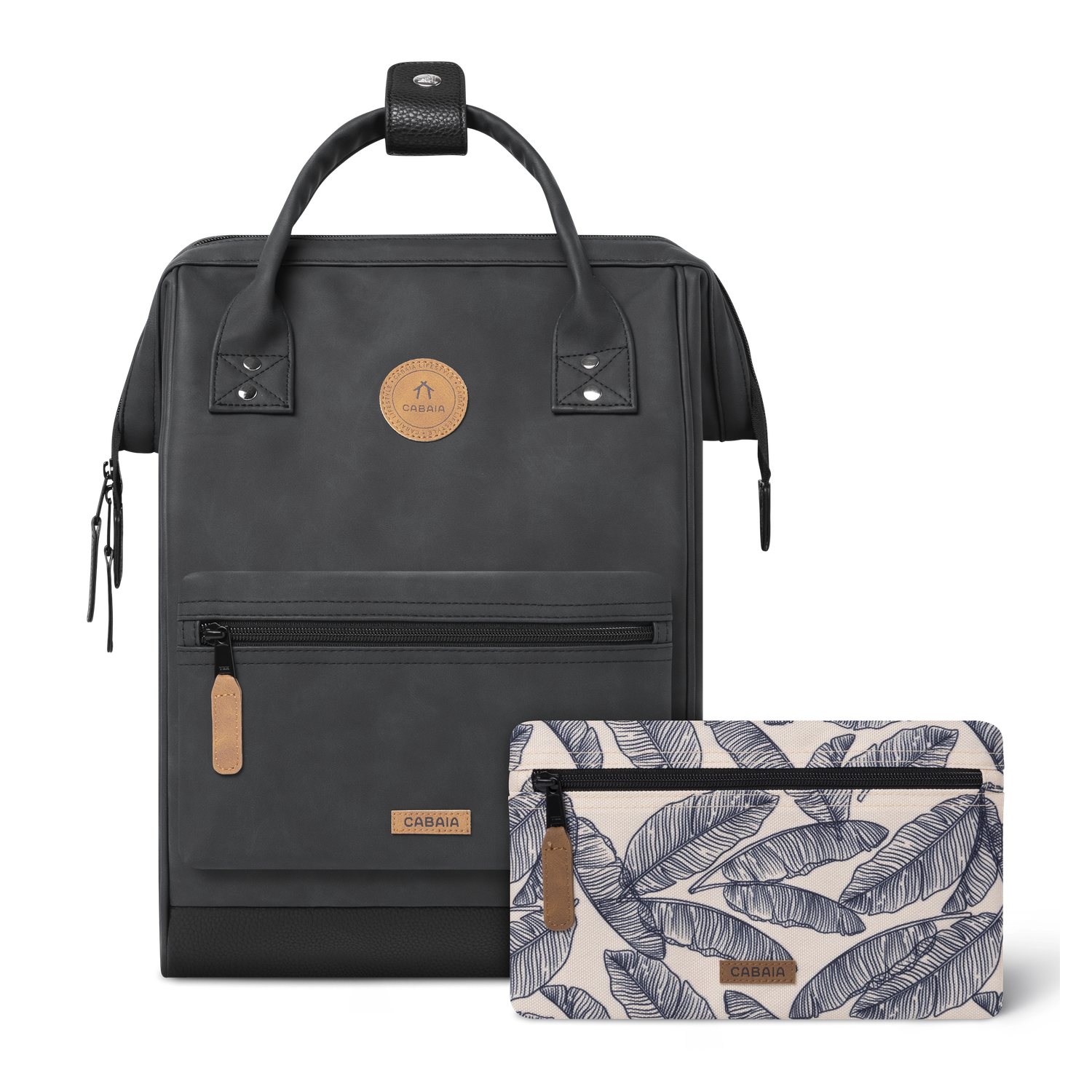 Ce sac est accompagné de 2 pochettes interchangeables : noir (Perret) et rose à motif (Ile St François);