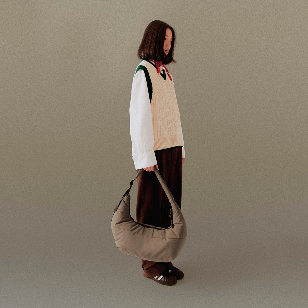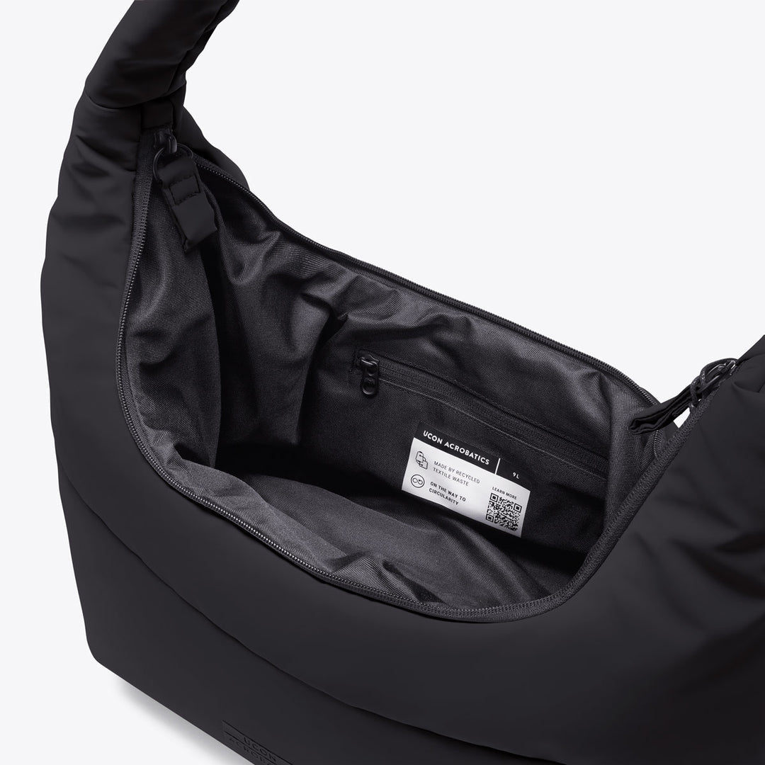 Sac épuré en forme de croissant pensé pour un port autour du corps, le Shota Medium combine silhouette sculpturale et confort absolu. Confectionné à partir de tissus PET recyclés, il arbore un design minimaliste avec une poche zippée dissimulée à l'extérieur et une poche intérieure pour y glisser vos essentiels (téléphone, portefeuille, etc.)