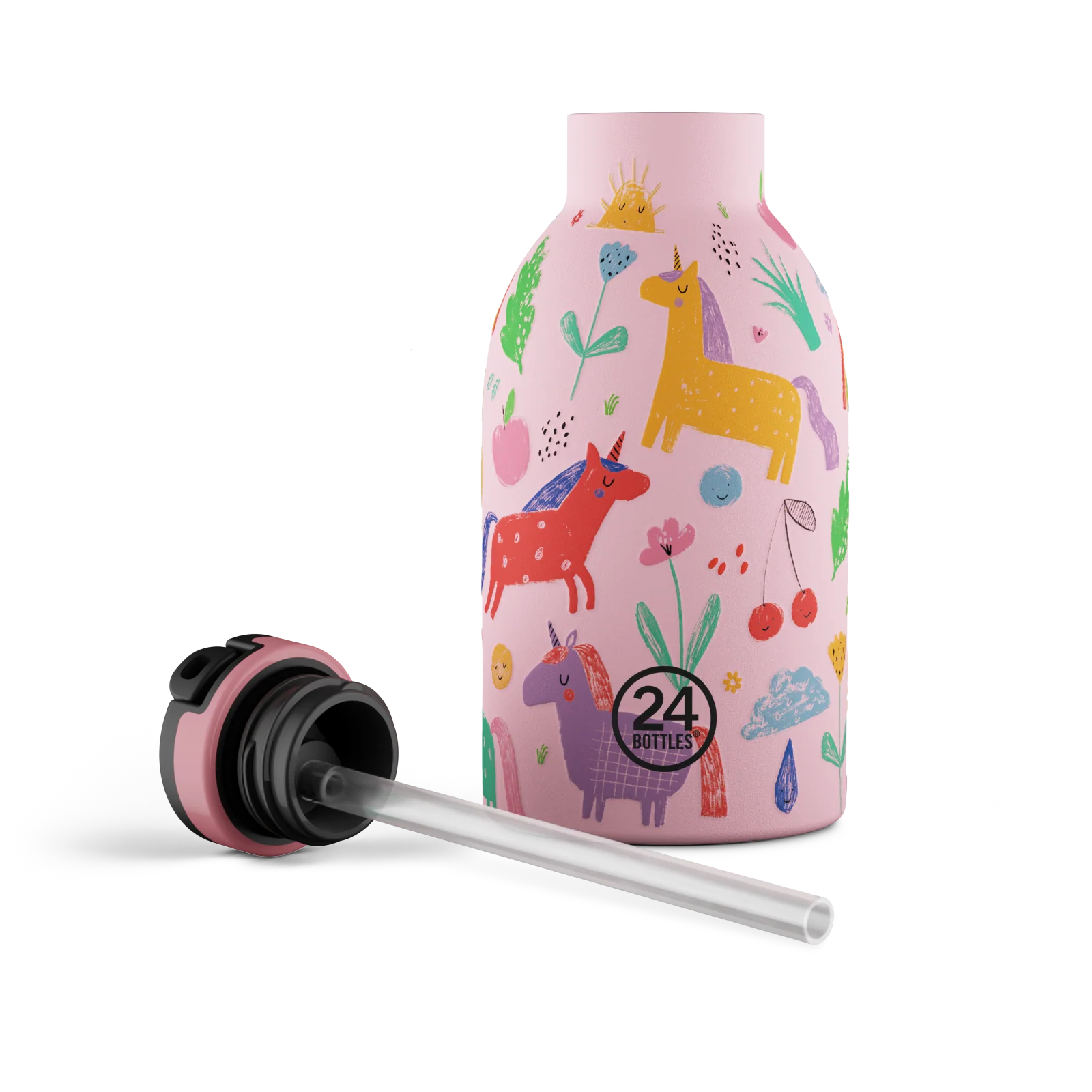 La Bottle Magic Friends 330 ml est une gourde spécialement conçue pour les enfants, alliant légèreté, sécurité et engagement durable. Fabriquée en acier inoxydable 18/8 et dotée d'une paille intégrée, elle garantit un goût neutre, une texture lisse et l’absence totale de substances nocives. Son design illustré aux motifs jungle stimule l’imagination tout en encourageant les plus jeunes à adopter des habitudes d’hydratation responsables. Parfaite pour l’école, les sorties et le quotidien, elle accompagne les enfants avec fiabilité tout en soutenant une démarche écologique réelle.